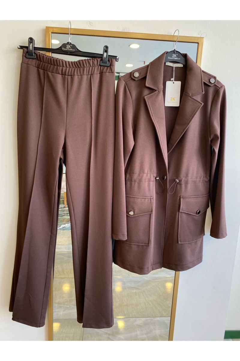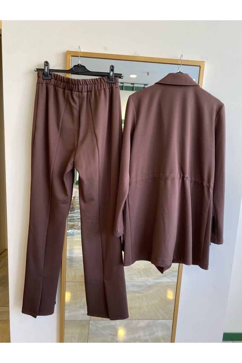 pantolonun arkasında yırtmaç detayı bulunmaktadır