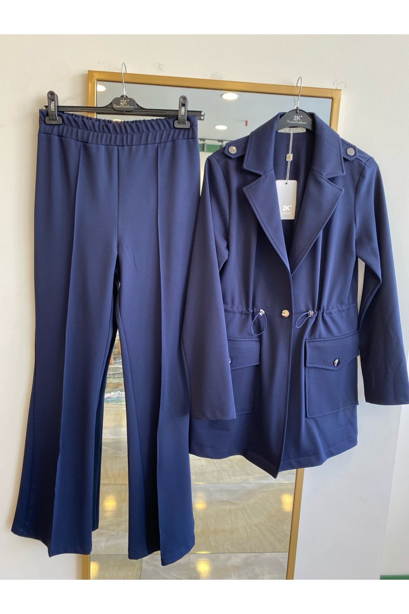 pantolonun arkası yırtmaçlı ceketinin beli bağlamalı bir model